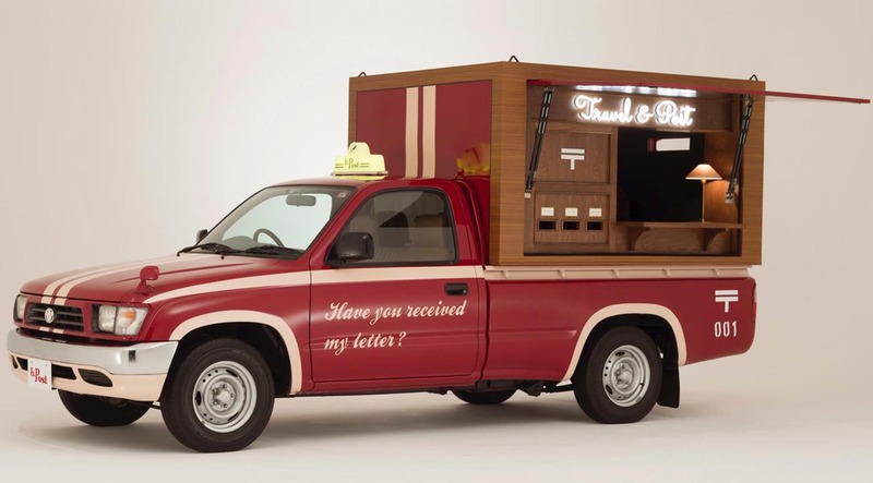 赤いポストカー走る。撮った写真をその場で絵はがきにする移動型郵便局