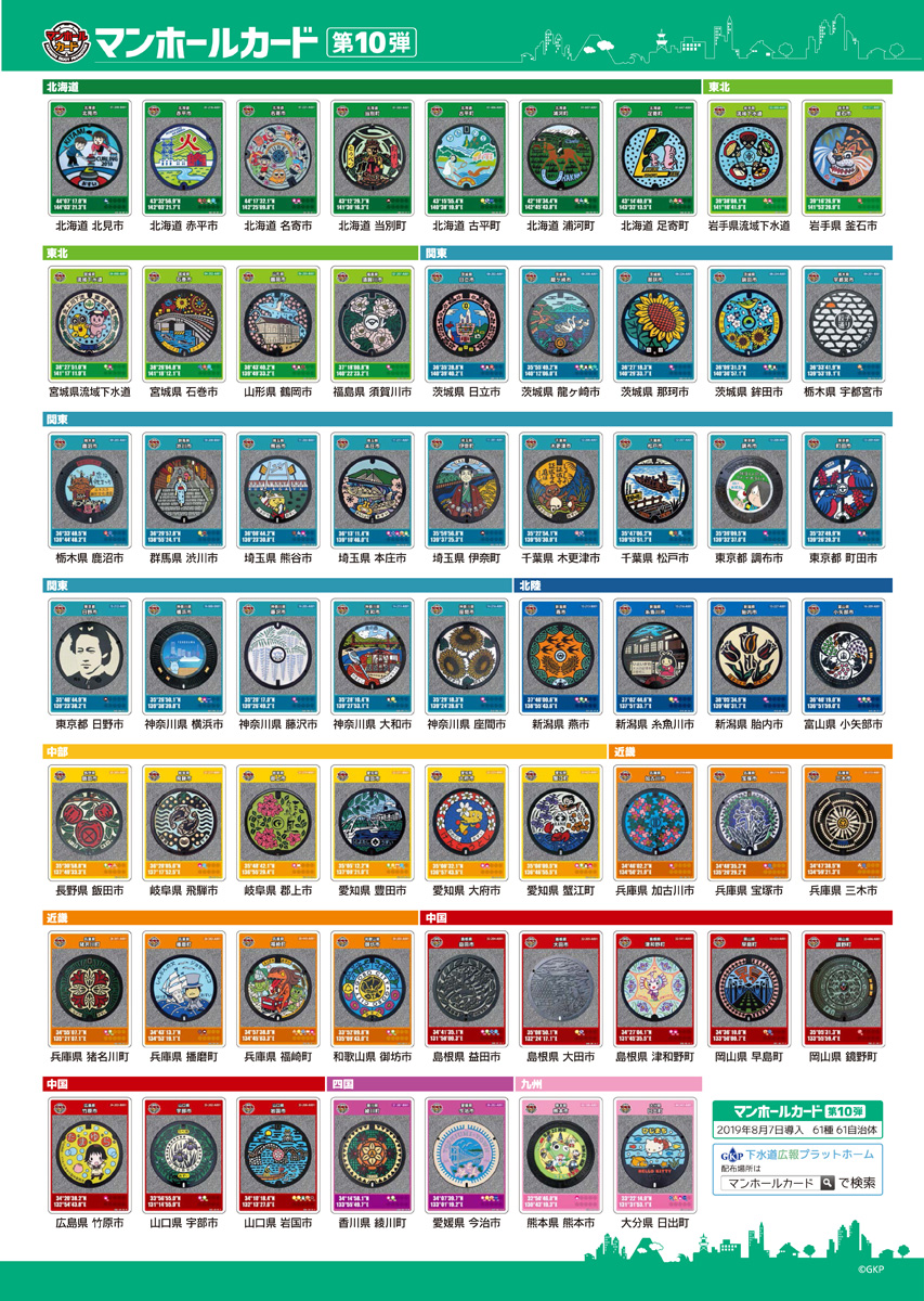 「マンホールカード」第10弾配布開始、47自治体61種類。国交省