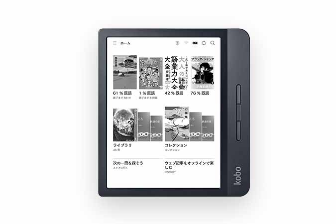 8インチ画面で見開き表示も可能な電子書籍リーダー「Kobo Forma」