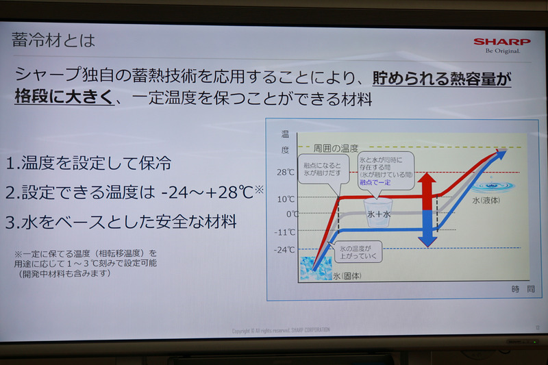 • シャープ、-22℃の「適温蓄冷材」。ドライアイスを代替