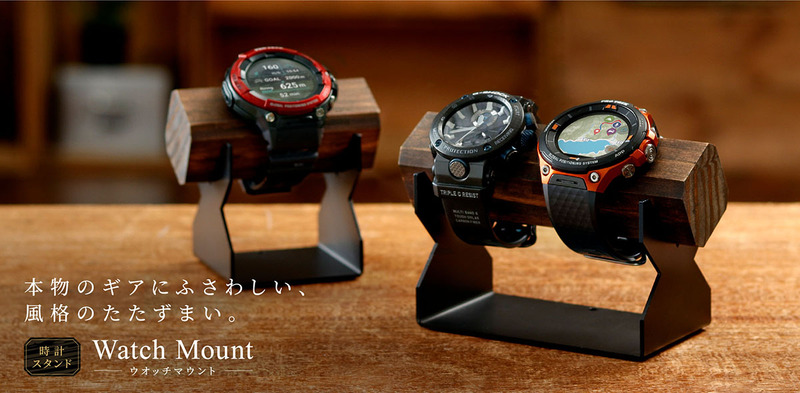 カシオ、“時計を飾る”「ウオッチマウント」。天然の松の木使用