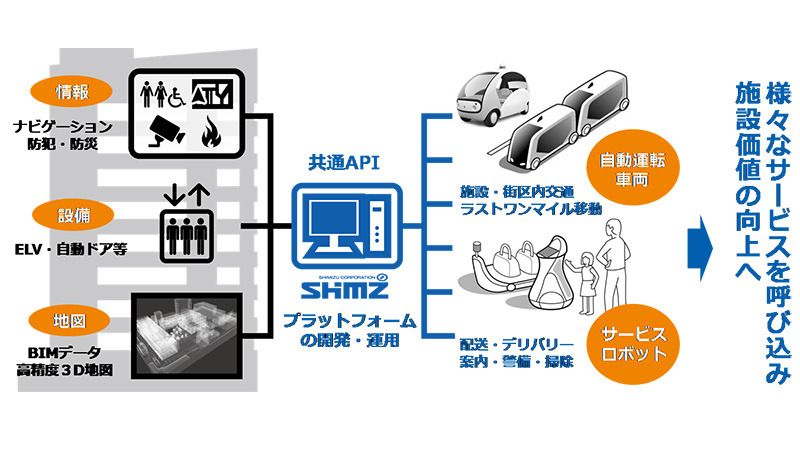清水建設、自動運転車両と経路案内を連携した施設内移動サービス