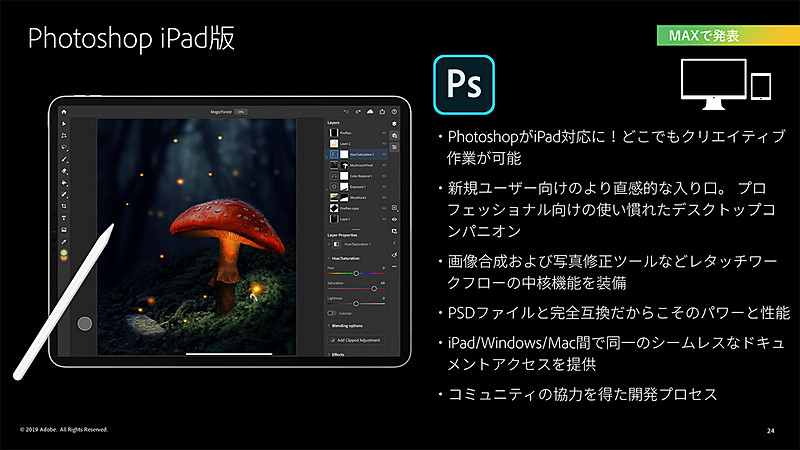 iPad版Photoshopや動画クリエイターアプリ「Rush」などAdobe次世代製品