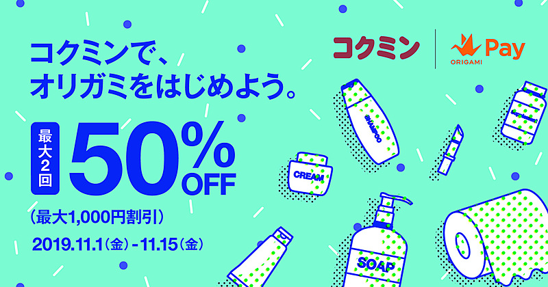 コクミンドラッグ、Origami Pay支払いで50%OFFクーポン