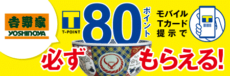 吉野家、「モバイルTカード」に対応。Tマネーで支払い可能に