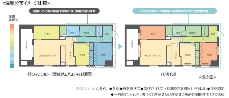 床空調で居住空間全体を快適に保つ「床快full」。野村不動産