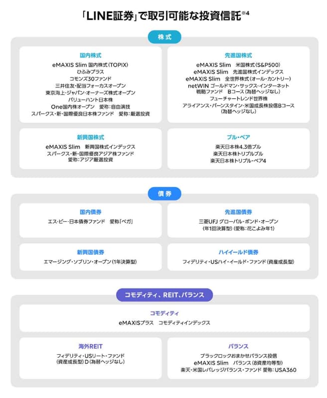 LINE証券、投資信託を取扱開始。eMAXIS Slimなど28銘柄(2/4)