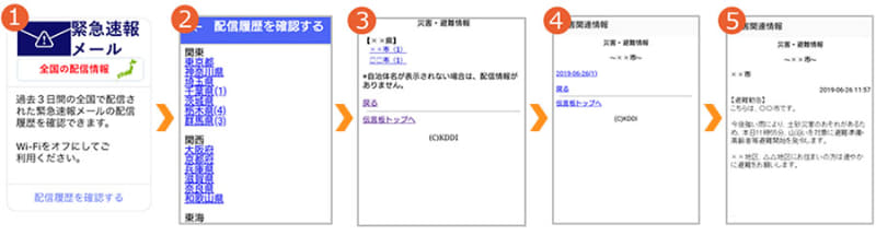 過去の緊急速報メールを見返せる「au災害対策」