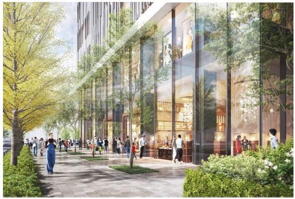 • 御堂筋に高さ135m、広さ1.7haの複合施設。淀屋橋駅直結