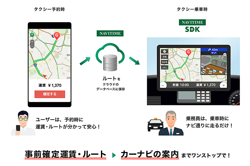 NAVITIME SDK、検索した事前確定運賃・ルートをタクシーのナビと共有