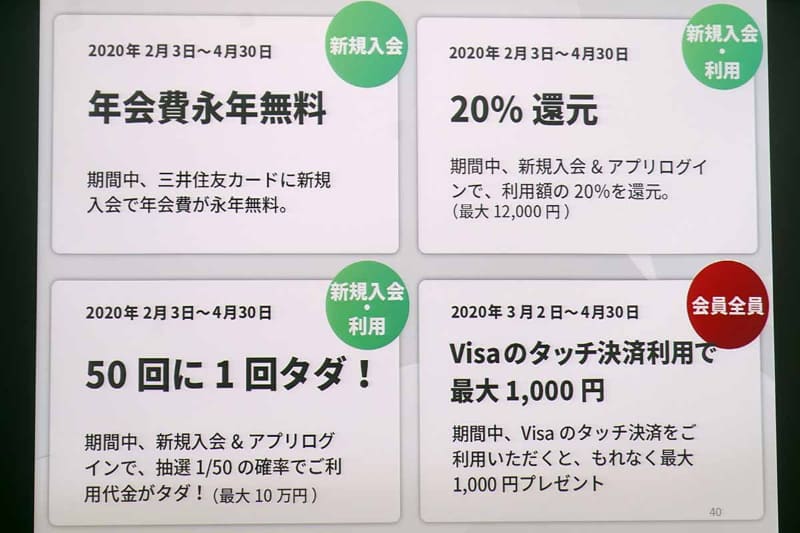 • 三井住友カード、「次世代カード」発行開始。新規発行で20%還元も