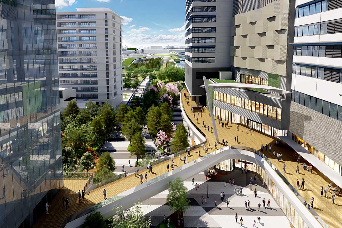 三菱地所とIHI、豊洲に2棟のオフィスビル。商業や歩行者デッキも整備
