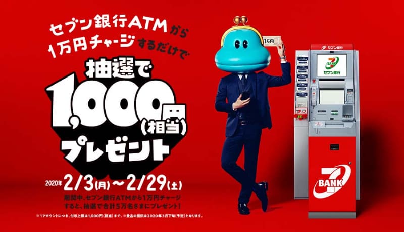 セブン銀行ATM、1万円チャージで1千円プレゼント。スマホ決済5社