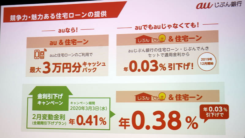 au携帯とセットで住宅ローン金利を引き下げ、変動0.31%。auじぶん銀行