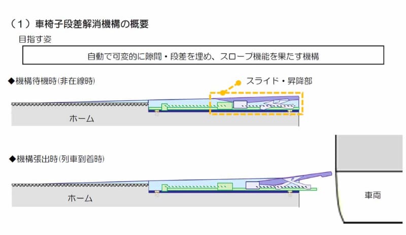 JR西、ホームと列車の隙間を自動で可変的に埋めるスロープ機構