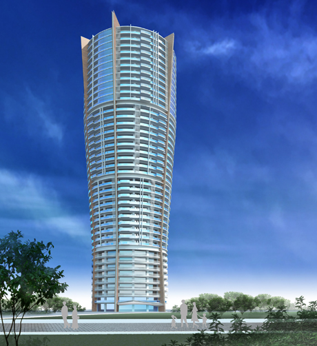 低層階より高層階の方が広い免震タワー。三井住友建設の新構法