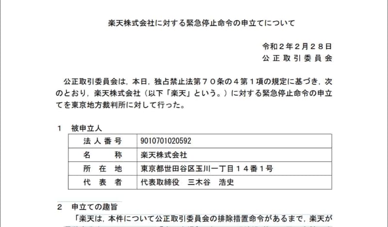 楽天の送料無料化施策で、公取委が立ち入り調査