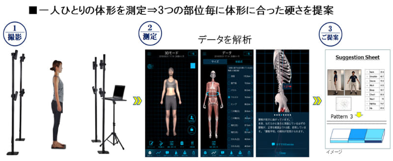 • スマホで撮影すれば自分にあったマットレスが分かる。エアウィーヴ