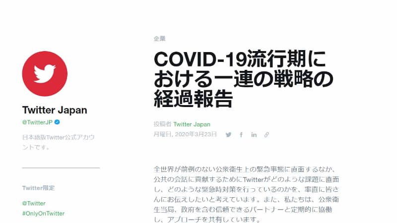 Twitter、新型コロナウイルス関連で信頼できる情報を発信