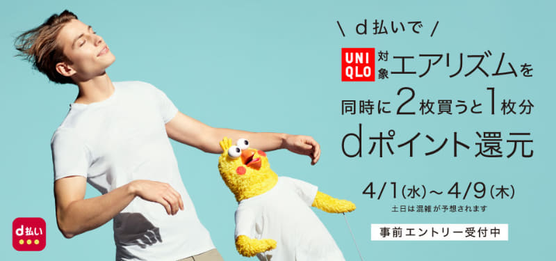 ユニクロのエアリズムをd払いで2枚買うと1枚分のdポイント