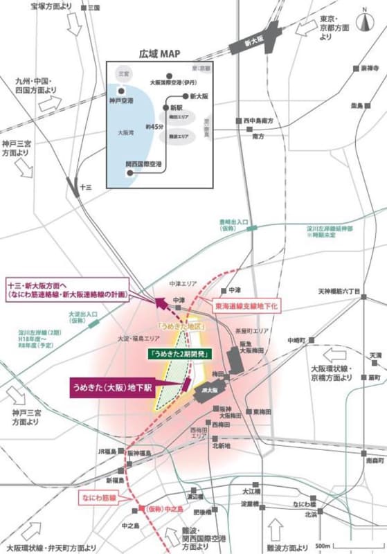 • 大阪駅西側地区で大規模複合開発。新改札口、大型複合ビルなど