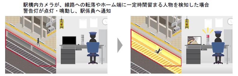 小田急、駅構内カメラ映像に行動認識AI 転落や車いす、不審者検知