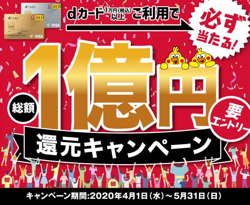 ドコモのdカード、「総額1億円還元キャンペーン」。最大10万ポイント