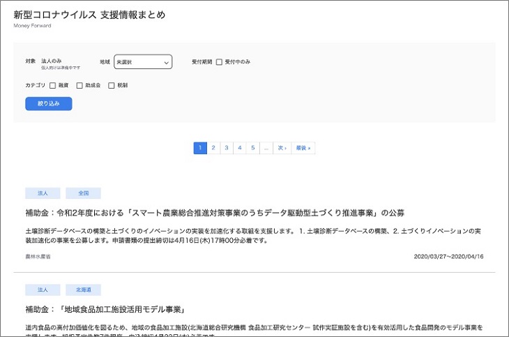 個人向け新型コロナ給付金検索サイト。マネーフォワード