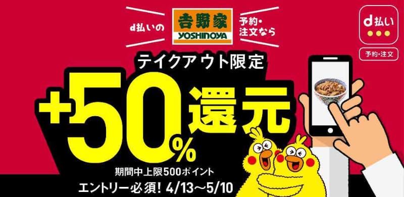 ドコモ、d払いの吉野家ミニアプリを一時停止。50%還元も打ち切り
