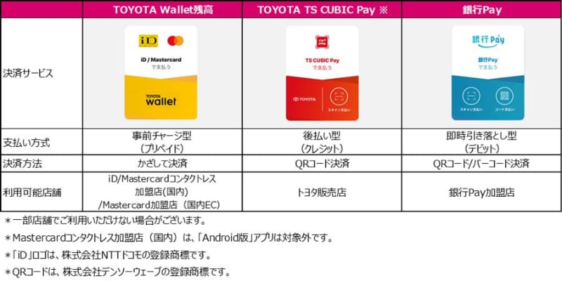 トヨタのスマホ決済「TOYOTA Wallet」QUICPay追加でApple/Google Payに対応