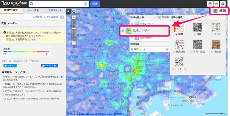 Yahoo! MAP「混雑レーダー」復活。“密”を避ける行動をサポート(5/6)