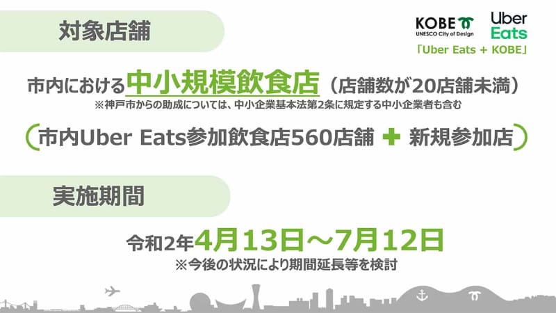 神戸市×Uber Eats、飲食店と家庭を支援。神戸全域テイクアウトや手数料補助(5/13)