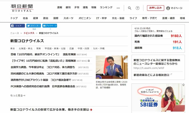 朝日新聞デジタル、掲載記事を原則無料公開。新型コロナ対応で
