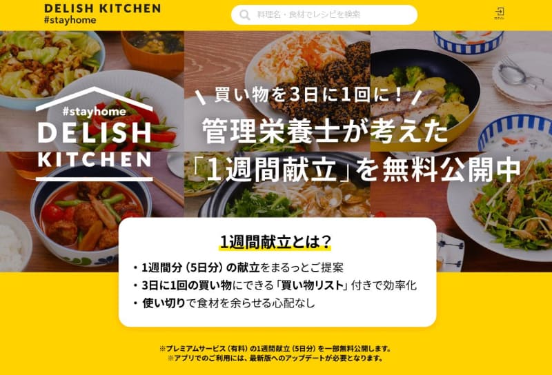 1週間献立や卸売市場連携で巣ごもり応援。DELISH KITCHENとクックパッド