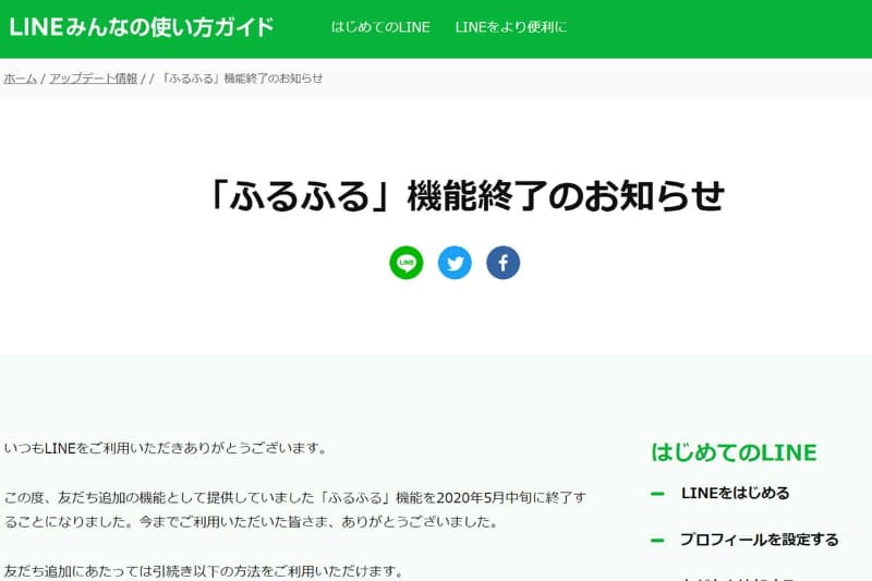 LINE、「ふるふる」での友だち追加機能を終了
