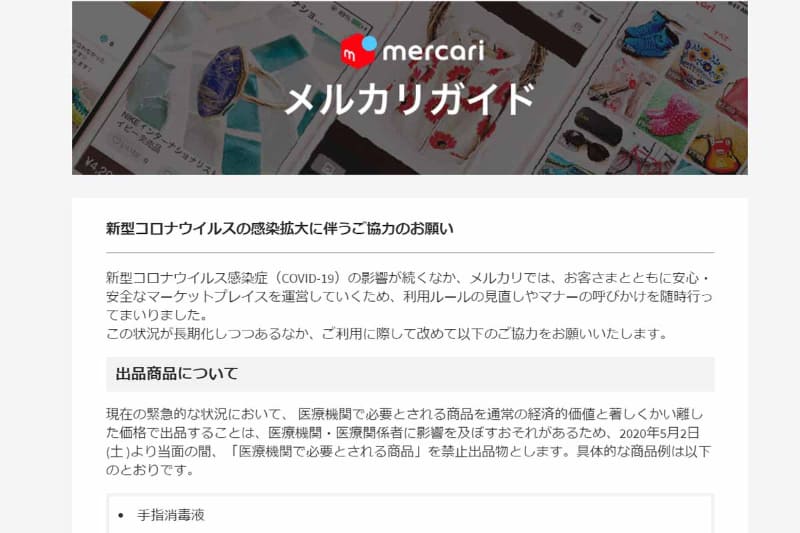 メルカリ、転売規制解除後もマスク・消毒液など出品禁止