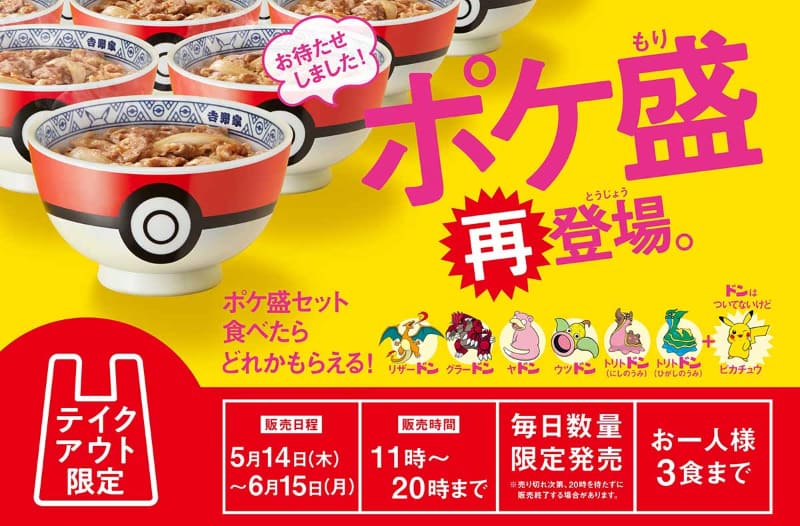 吉野家とポケモンがコラボ「ポケ盛」。牛丼の器がモンスターボール