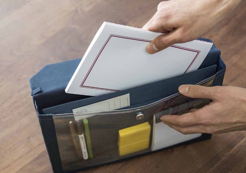 キングジム、前面が斜めに開いて出し入れしやすいトート「サットン」