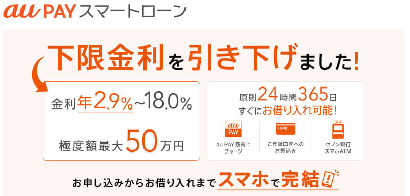 スマホで借りられる「au WALLET スマートローン」。金利8~18%