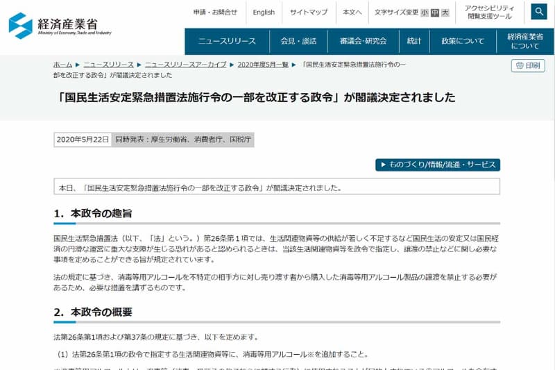 マスク・消毒用アルコールの転売規制解除。供給量安定