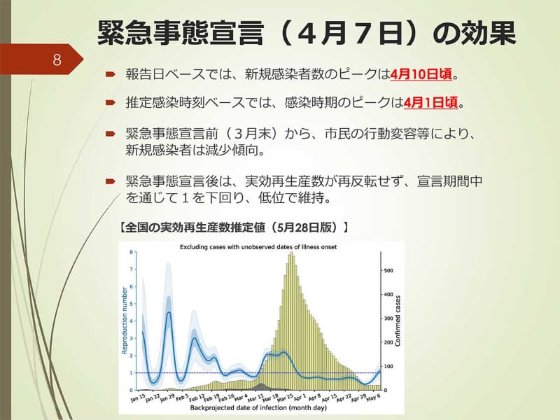 • 「明るい兆し」はあるが「長丁場」の対応が必要。新型コロナ専門家会議