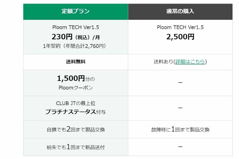 JT、「Ploom 定額プラン」。月額230円で加熱式たばこが使える