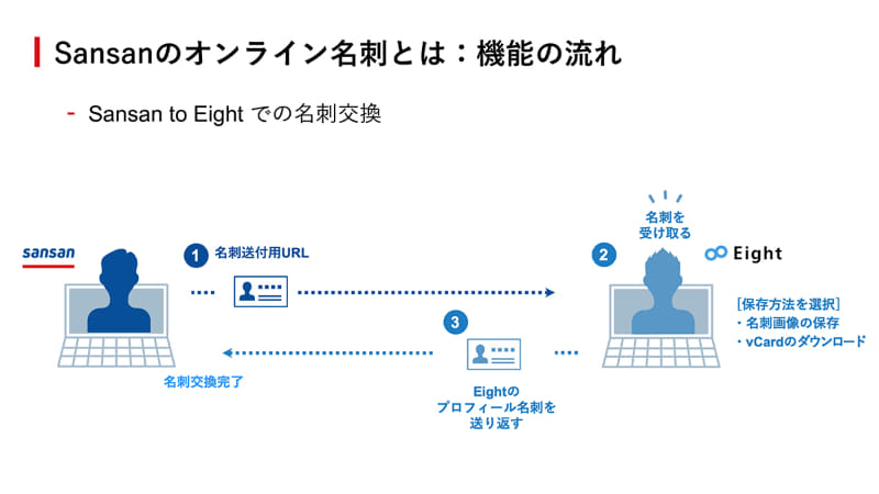 • SansanとEightの間でオンライン名刺交換がスムーズに