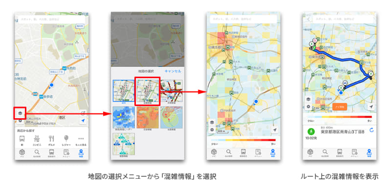 Yahoo! MAP「混雑レーダー」、20分前の混雑状況が確認可能に