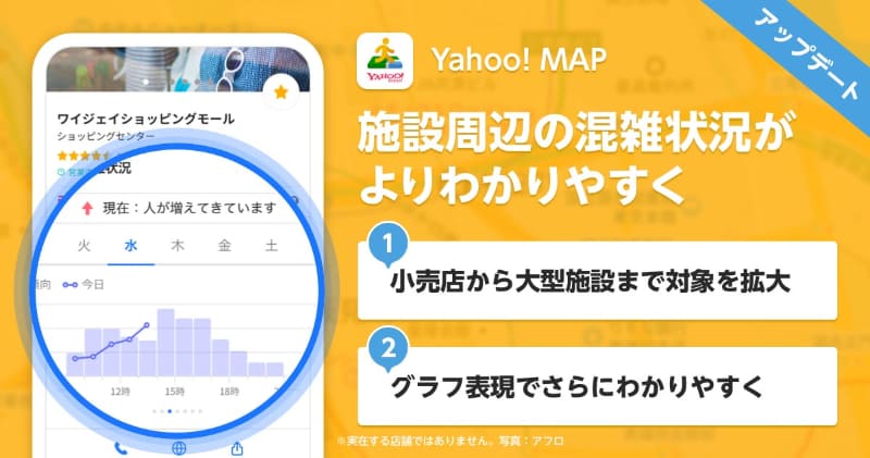 Yahoo! MAP、スーパーや薬局の「混雑予報」が全国17万件に拡充