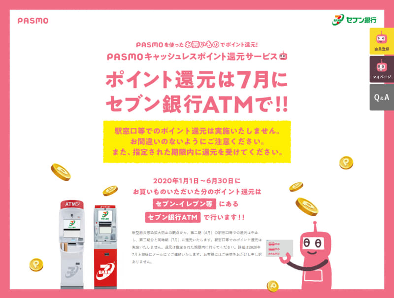 PASMOの第2期ポイント還元延期。7月にセブン銀行ATMで無人還元