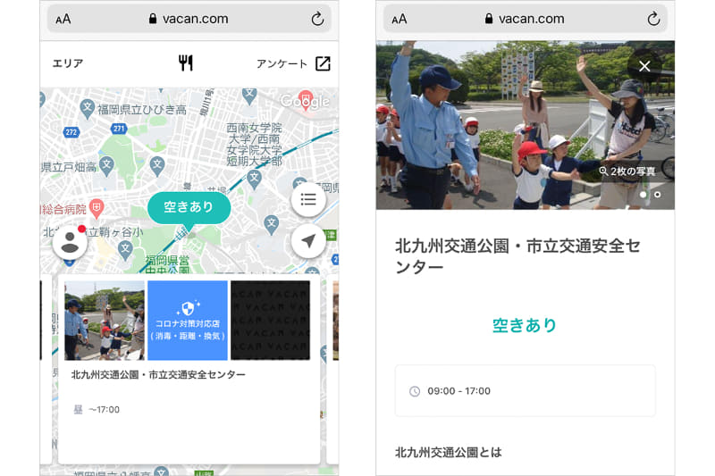 店の混雑状況がわかるマップ「VACAN」、関東エリアを公開