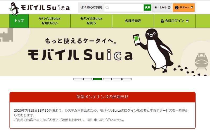 【復旧】モバイルSuicaにシステム不具合。チャージなど一時停止
