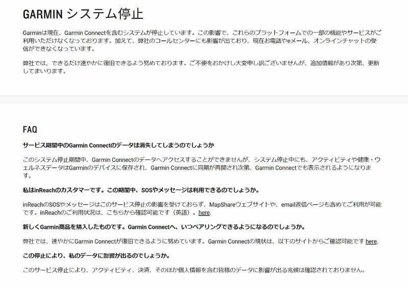 Garmin、サイバー攻撃によるシステム障害から復旧開始