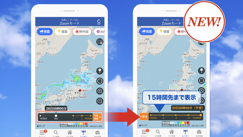 ウェザーニュース「雨雲レーダー」強化。27時間先まで予測